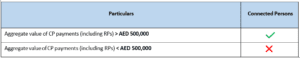 The requirement applies only when benefits or income per connected person (including related parties) exceed the 500,000 AED threshold.